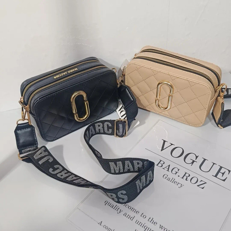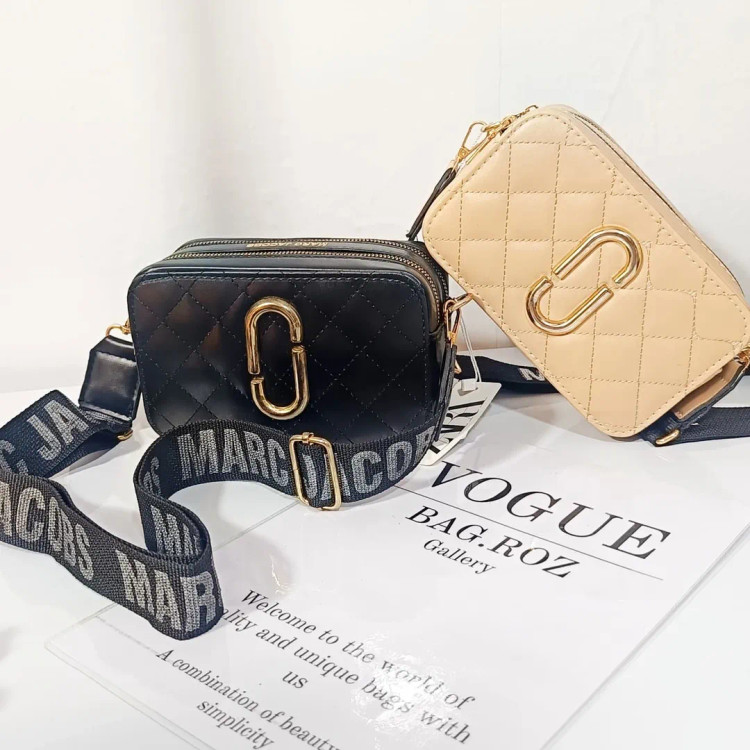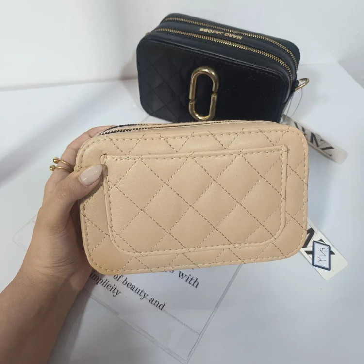 کیف جاکوبز با ابعاد مناسب و جنس چرم صنعتی دارای بند بلند قابل تنظیم. رنگبندی: کرم و مشکی.