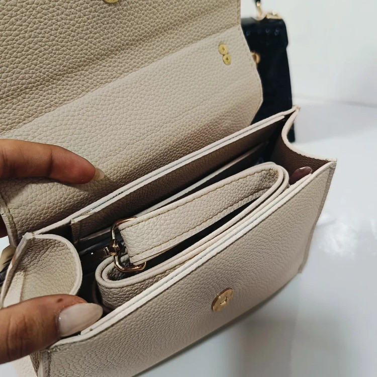 ابعاد :۲۱/۱۶ جنس:ورنی و چرم شرانگ رنگبندی :مشکی /کرم